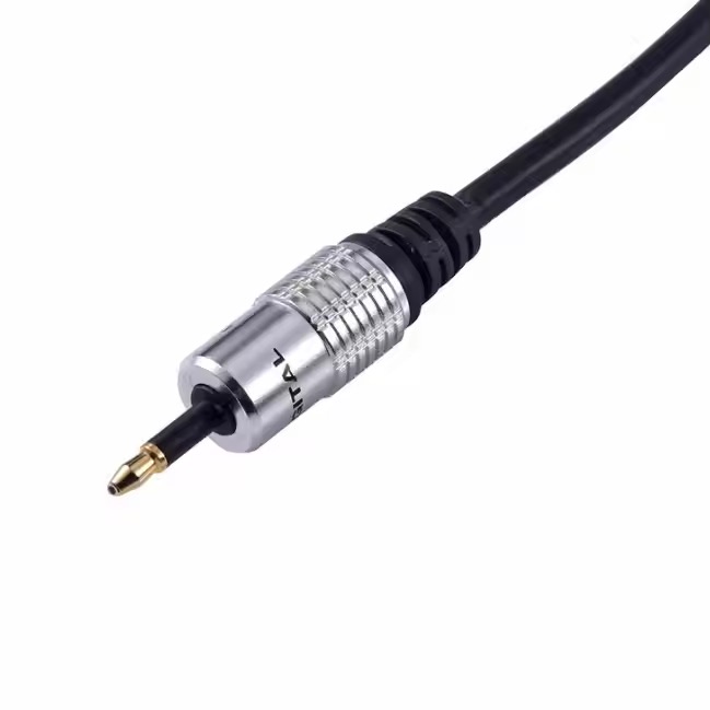 This TOSLINK female to 3.5mm mini optical plug cable features a metal housing with precision overmolded construction for superior durability and signal stability. The compact OD 6.0mm cable is ideal for tight spaces and portable applications. Designed to convert standard TOSLINK to Mini-TOSLINK (3.5mm optical), it enables digital audio transmission between a wide range of audio devices.